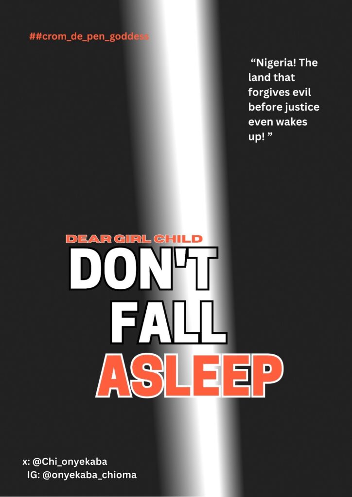 Just like Ochanya’s story, countless girls have been defiled by the very men who vowed to protect them. Uncles, fathers, stepfathers, pastors, neighbours, husbands, lecturers and all other titles they bear. And sometimes, mothers and aunties would turn a blind eye, choosing what they term “peace” over “justice”.
